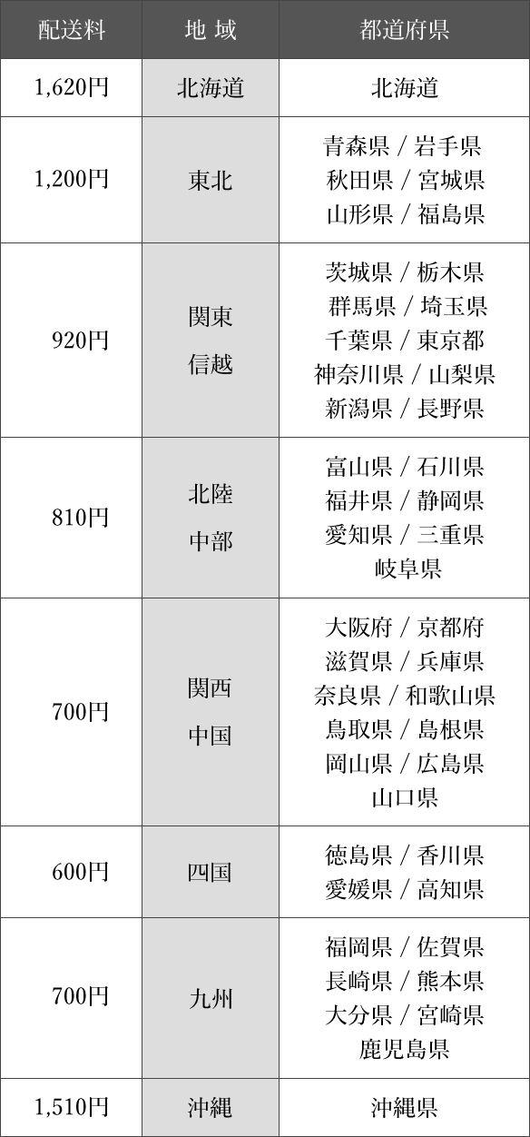 (沖縄県はゆうパックでの配送となります。離島は実費をご負担いただきます。)