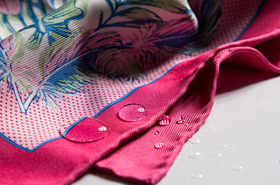 水に濡れても安心して使用できるシルクスカーフをつくりました。